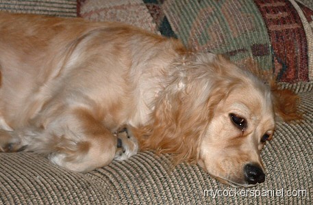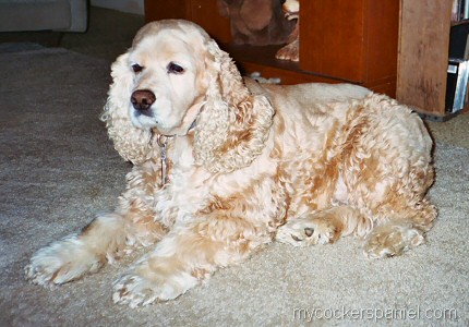At the age of 9 Cybill started having problems with her teeth. I made an appointment with her vet to have her teeth cleaned. She had some infection in her gums and had to have 1 tooth pulled. After a couple of weeks she continued to have pain in her mouth, so back to the vet. More antibiotics & pain relievers. This continued for a few months, then we were finally referred to a specialist, a doggie dentist. Diagnosis? A very rare immune disorder in her gums! End results? Pull her teeth or put her down! Needless to say her teeth were pulled, ALL of them! Cyb is doing fine now and has no problem eating; after all she is a Cocker Spaniel and they usually love to eat. The whole dental procedure was costly and I had one person ask me how much it cost. I gave them an approximate amount and their comment was "you could have has a 1 carat diamond ring for that amount"! My response was "I would much rather have her cold wet nose than an old cold rock!"